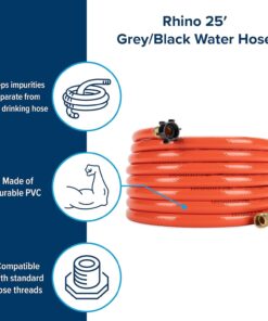 • Clean-Out RV Sanitation Hose: Camco’s Rhino 25′ Clean-Out Hose efficiently cleans out black and RV grey water tanks, or RV portable waste tanks for a more sanitary experience.