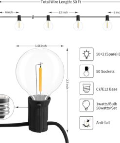 - Convenient and Long Lifespan Led Outdoor Lights String: Each socket designed with horizontal and vertical hooks for quick hanging, also the cable ties included for cord regulation and quick installation of this hanging lights for outside patio. 1W per bulb, c7 or e12 candelabra socket base, much lower wattage will save more energy for you, but the lifespan is 10 to 20 times of the traditional tungsten bulb