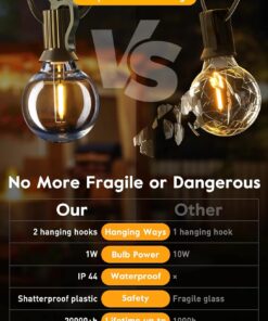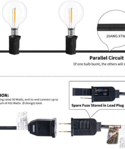 - Safe Patio Lights Outdoor: Bistro lights more safety than the normal lights. A light bulb that goes out does not affect other light bulbs of the electric plug in led string lights