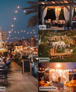 - Indoor and Outdoor Hanging: These led outside lights is very easy to install with a cable tie or cup hook. Perfect outdoor lighting for patio, amazing for residential, commercial, festival and activities like home, backyard, yard, window, fence, garden, deck, pool, canopy, porch, pergola, tent, camping, gazebo, booth, bistro, bar, pub, cafe, restaurant, wedding, hotel, mall, classroom