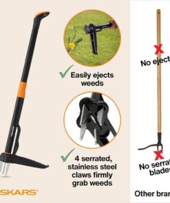 - INCLUDES: 1 Fiskars 39″ long hand weeder to permanently remove dandelions, thistles, and other invasive weeds; Included lifetime warranty