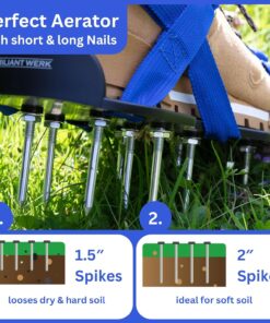 - DUAL-USE FLEXIBILITY – Equipped with 2″ spikes for deep lawn aeration and 1.5″ for effective screeding, our shoes excel in essential lawn care tasks, including aerating and dethatching.