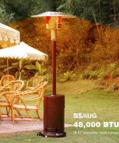- 48,000 Outdoor Heater-This patio heater generates 48,000 BTU of heat in a minute and spreads the heat from its central heating location to a diameter of 18 FT, providing warmth for 4-8 people outdoors.It is ideal for outdoor or commercial use on patios, outdoor balconies, gardens, etc.