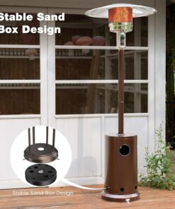 - Convenient Table Design-This propane heater is designed with a round small table top to give you a convenient place to place drinks, phones or other small items. It also has a round hole designed to make it easy for you to close the gas tank.